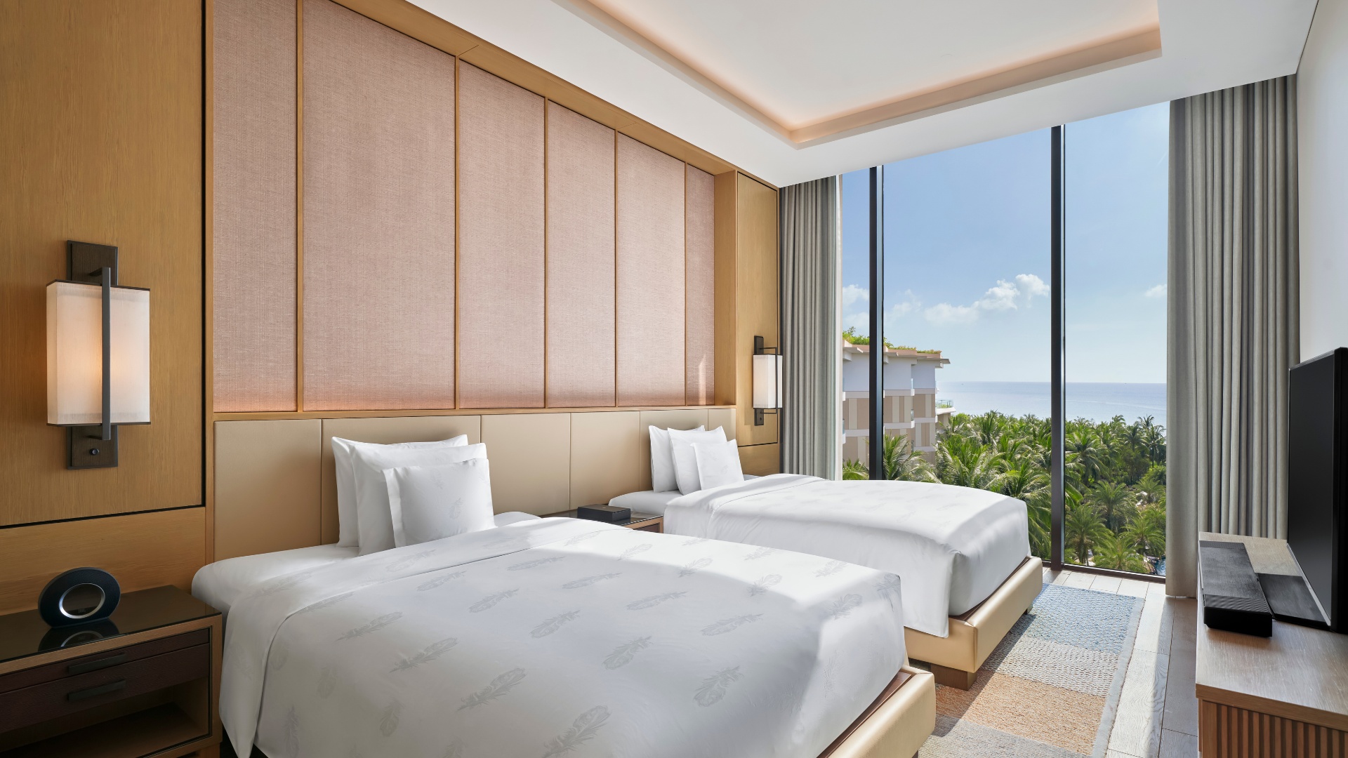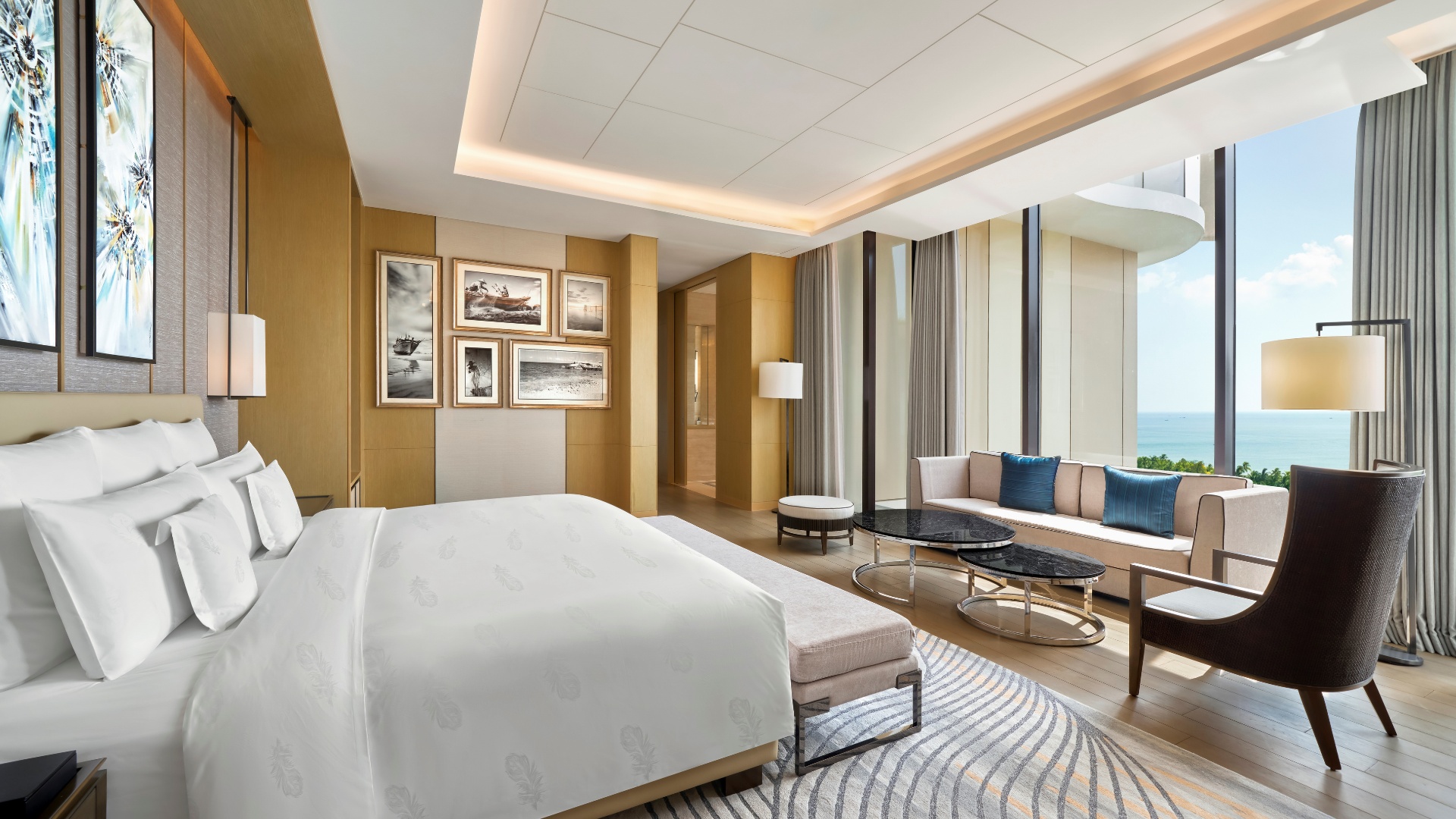 フーコックのリゾート施設の中でも最も規模が広く、高級感のあるスイートルーム. 305 平方メートルあるブリッジスイートでは広めのバルコニーからの素晴らしいオーシャンビュー の他にも、2部屋のベッドルーム やダイニングスペース付きのリビングルームを堪能頂きます。 空港への送迎サービス、スイートルームへの直接チェックイン、チェックアウト以外にも、クラブインターコンチネンタル ラウンジ(Club InterContinental Lounge)への入場券、朝食サービス、アフタヌーンティー、カクテルパーティーやカナッペ等のおつまみもお楽しみいただけます。