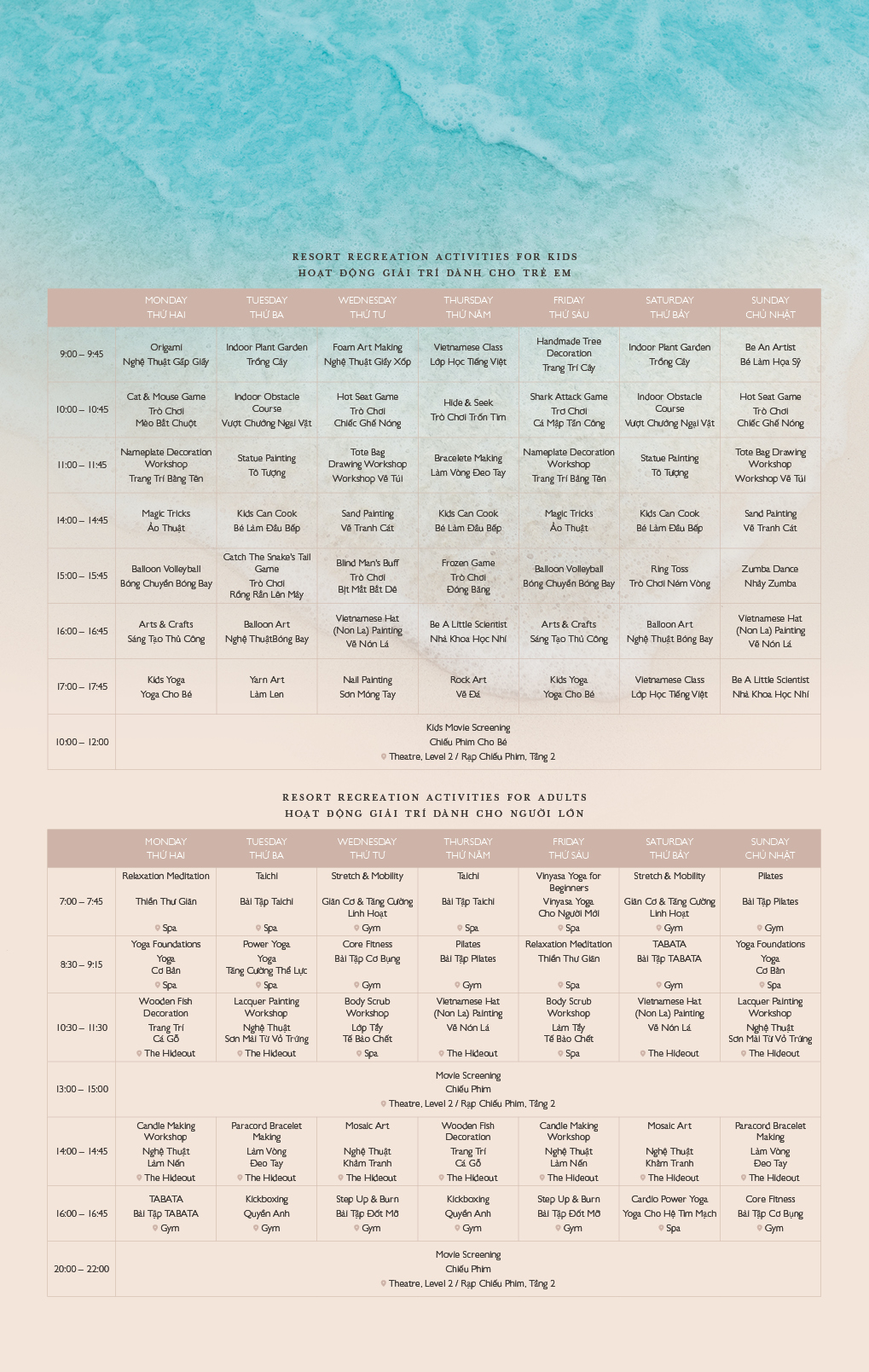 このトロピカルな楽園で、つながりを育み、心に残る思い出を作るために丁寧に設計された、無料の屋内外アクティビティを通じて、尽きることのない喜びと冒険を体験してください。