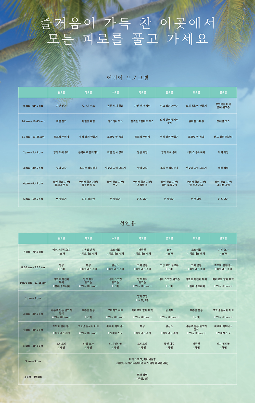 프로 팀이 운영하는 마술 쇼나 연 날리기 같은 수많은 활동은 어린손님들을 하루종일 바쁘게 만들 것입니다.